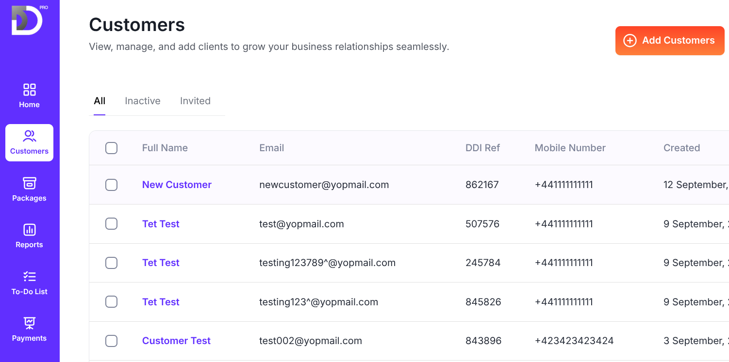 Once they have submitted their details via this mandate, the information will automatically be added to DD pro system and show in 'Customer List'