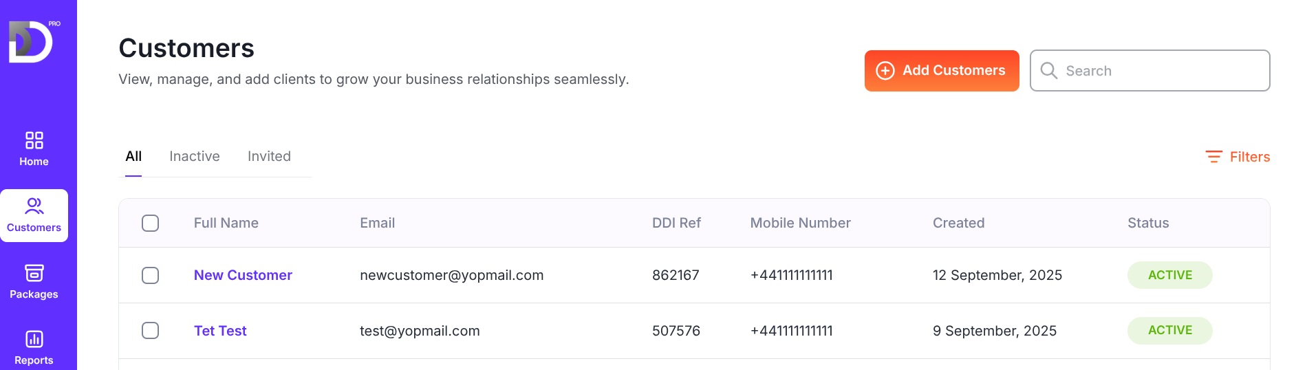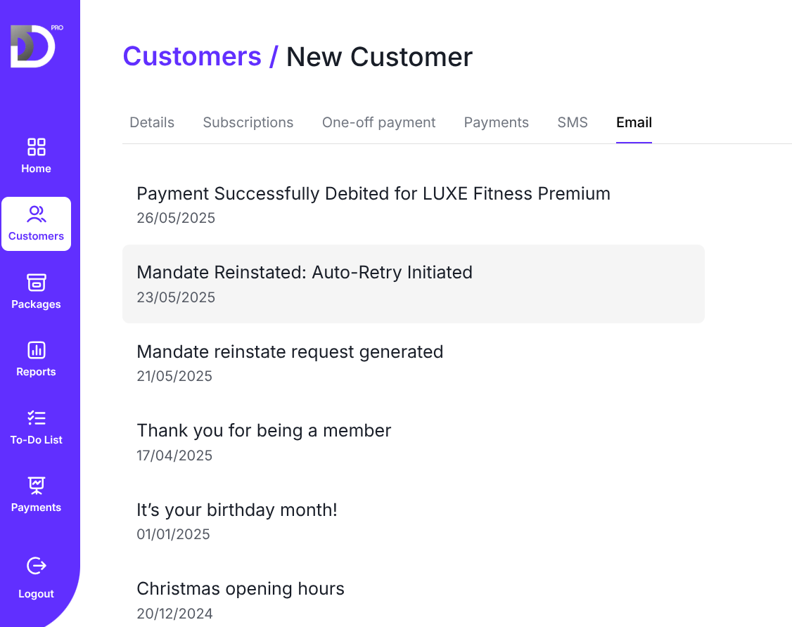 Want to view individual customer payments and subscriptions? Use the 'Customers' tab on our menu