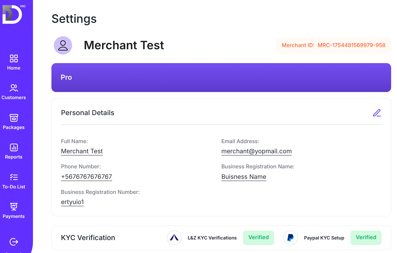 Check the status of your DD and card payment setup to ensure you are ready to go. Edit your contact name and phone number here. To edit business details please reach out to us directly and we will walk you through the process to do this